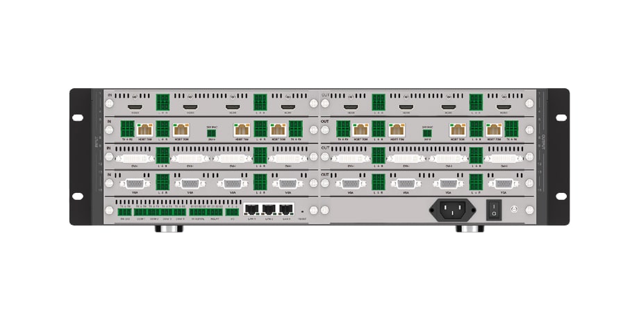 Это позволяет оптимально подобрать весь комплект оборудование для конкретного мультимедиа проекта. Также модульная конструкция дает возможность оперативно менять внешнее оборудование, обеспечивая работоспособность и необходимую логику коммутирования простой заменой плат расширения.